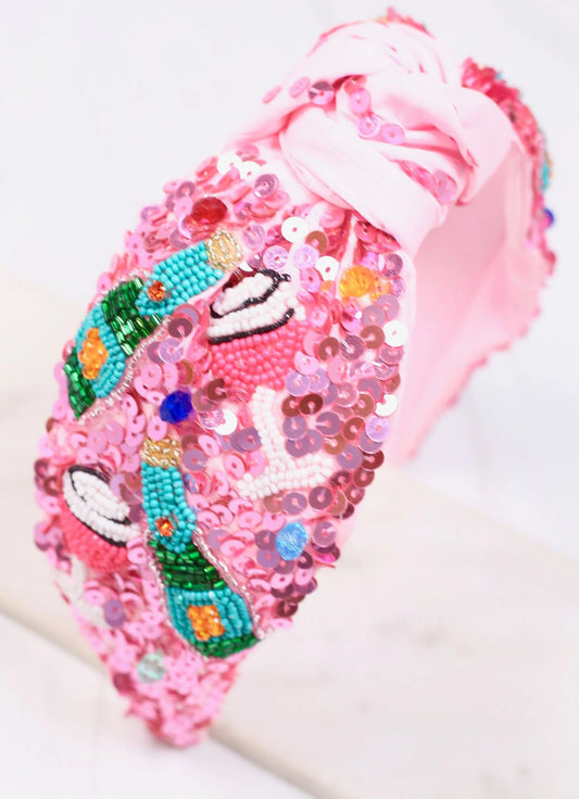Western Howdy Honey Top Knotted Beaded Headband - Red