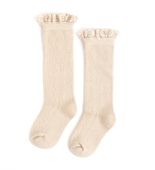 Classic Ivory Knotbow Ribbed Knee High Stocking